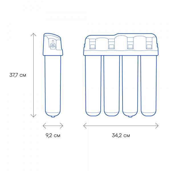 Обратноосмотические фильтры используются для абсолютной защиты от накипи, т.к. полностью устраняют соли жесткости из воды.нетЧисло ступеней очисткиКартриджи последовательно очищают воду и от видимых примесей, и от растворенных. Первый картридж задерживает более крупные частицы, а каждый последующий - более мелкие. Чем больше ступеней - тем лучше фильтр очистит воду: поймает более мелкие видимые частицы ржавчины, песка и ила, успеет захватить из воды максимум растворенных примесей - хлора, нитратов, тяжелых металлов и других.4МинерализацияПроисходит после финишной очистки воды. Необходима прежде всего в фильтре обратного осмоса, поскольку такой фильтр полностью устраняет из воды все примеси, в том числе минералы. Минералы добавляются в оптимальной концентрации - для пользы и привычного вкуса воды.нетПостфильтрацияФинальный этап очистки воды: картриджи постфильтрации удаляют самые мелкие механические частицы и кондиционируют воду, придавая ей более приятный вкус.нетНакопительная емкостьОбычно нужна в фильтрах обратного осмоса. Глубокая фильтрация требует времени. Чтобы Вам не приходилось ждать, пока вода наберется в чайник или кастрюлю, почти во всех моделях используется накопительный бак для чистой воды или другая емкость. В стандартном фильтре обратного осмоса под мойку воды в баке достаточно для семьи из 5-6 человек.нетФильтрующий модуль в комплектедаОтдельный крандаДавление в водопроводе не более, атмМаксимальное давление воды на входе в систему, при котором возможна стабильная работа фильтра.6,5Ширина, смОбратите внимание на габариты фильтра, и измерьте, сколько свободного пространства в предполагаемом месте установки.37,7Глубина, смОбратите внимание на габариты фильтра, и измерьте, сколько свободного пространства в предполагаемом месте установки.9,2Защита корпуса от гидроударовдаИсходная водаЖесткая вода – вода с избытком минеральных солей. От нее появляется накипь в чайнике, известковый налет на сантехнике и разводы на посуде. Мягкая вода – та, в которой мало минеральных солей. Нет накипи в чайнике и разводов на посуде. Фильтры для мутной воды и фильтры от ржавчины, как правило, имеют несколько стадий очистки и дополнительный полипропиленовый картридж. Он задерживает механические частицы ила, песка и ржавчины и защищает картриджи более глубокой очистки.жёсткаяУстраняет мутностьМутность водопроводной воды может говорить о том, что в ней много мелких механических частиц. Важно, чтобы в фильтре был установлен дополнительные картридж механической предфильтрации (полипропиленовый) - он продлит жизнь остальным картриджам более тонкой очистки.даУстраняет ржавчину, бурый осадокЛюбой фильтр под мойку удалит из воды крупные и мелкие частицы ржавчины. Некоторые фильтры имеют повышенный ресурс по железу: они дольше служат в такой воде, поскольку лучше подходят для удаления из воды железа и механических частиц ржавчины.нетЗащита от бактерийВсе проточные фильтры в той или иной степени защищают от бактерий. Например, добавление серебра препятствует их размножению. Это стандартная степень защиты. Если в семье есть дети, пожилые люди или аллергики, воду рекомендуется обеззараживать, то есть полностью удалять микроорганизмы. Повышенную защиту от бактерий дают фильтры с половолоконной мембраной. Это пучок тру