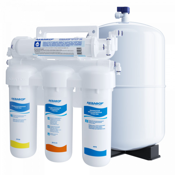 Обратноосмотические фильтры используются для абсолютной защиты от накипи, т.к. полностью устраняют соли жесткости из воды.даЧисло ступеней очисткиКартриджи последовательно очищают воду и от видимых примесей, и от растворенных. Первый картридж задерживает более крупные частицы, а каждый последующий - более мелкие. Чем больше ступеней - тем лучше фильтр очистит воду: поймает более мелкие видимые частицы ржавчины, песка и ила, успеет захватить из воды максимум растворенных примесей - хлора, нитратов, тяжелых металлов и других.5МинерализацияПроисходит после финишной очистки воды. Необходима прежде всего в фильтре обратного осмоса, поскольку такой фильтр полностью устраняет из воды все примеси, в том числе минералы. Минералы добавляются в оптимальной концентрации - для пользы и привычного вкуса воды.даПостфильтрацияФинальный этап очистки воды: картриджи постфильтрации удаляют самые мелкие механические частицы и кондиционируют воду, придавая ей более приятный вкус.даНакопительная емкостьОбычно нужна в фильтрах обратного осмоса. Глубокая фильтрация требует времени. Чтобы Вам не приходилось ждать, пока вода наберется в чайник или кастрюлю, почти во всех моделях используется накопительный бак для чистой воды или другая емкость. В стандартном фильтре обратного осмоса под мойку воды в баке достаточно для семьи из 5-6 человек.даФильтрующий модуль в комплектедаОтдельный крандаДавление в водопроводе не менее, атм3,5Давление в водопроводе не более, атмМаксимальное давление воды на входе в систему, при котором возможна стабильная работа фильтра.6,5Ширина, смОбратите внимание на габариты фильтра, и измерьте, сколько свободного пространства в предполагаемом месте установки.42,0Глубина, смОбратите внимание на габариты фильтра, и измерьте, сколько свободного пространства в предполагаемом месте установки.19,0Защита корпуса от гидроударовдаИсходная водаЖесткая вода – вода с избытком минеральных солей. От нее появляется накипь в чайнике, известковый налет на сантехнике и разводы на посуде. Мягкая вода – та, в которой мало минеральных солей. Нет накипи в чайнике и разводов на посуде. Фильтры для мутной воды и фильтры от ржавчины, как правило, имеют несколько стадий очистки и дополнительный полипропиленовый картридж. Он задерживает механические частицы ила, песка и ржавчины и защищает картриджи более глубокой очистки.любаяУстраняет мутностьМутность водопроводной воды может говорить о том, что в ней много мелких механических частиц. Важно, чтобы в фильтре был установлен дополнительные картридж механической предфильтрации (полипропиленовый) - он продлит жизнь остальным картриджам более тонкой очистки.даУстраняет ржавчину, бурый осадокЛюбой фильтр под мойку удалит из воды крупные и мелкие частицы ржавчины. Некоторые фильтры имеют повышенный ресурс по железу: они дольше служат в такой воде, поскольку лучше подходят для удаления из воды железа и механических частиц ржавчины.даЗащита от бактерийВсе проточные фильтры в той или иной степени защищают от бактерий. Например, добавление серебра препятствует их размножению. Это стандартная степень защиты. Если в семье есть дети, пожилые люди или аллергики, воду рекомендуется обеззараживать, то есть полностью удалять микроорганизмы. Повышенную защиту от бактерий дают фильтры с половолок