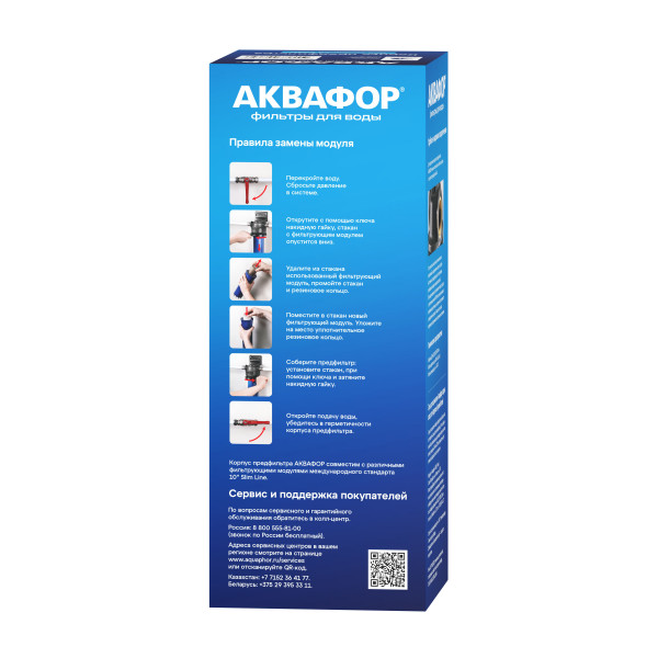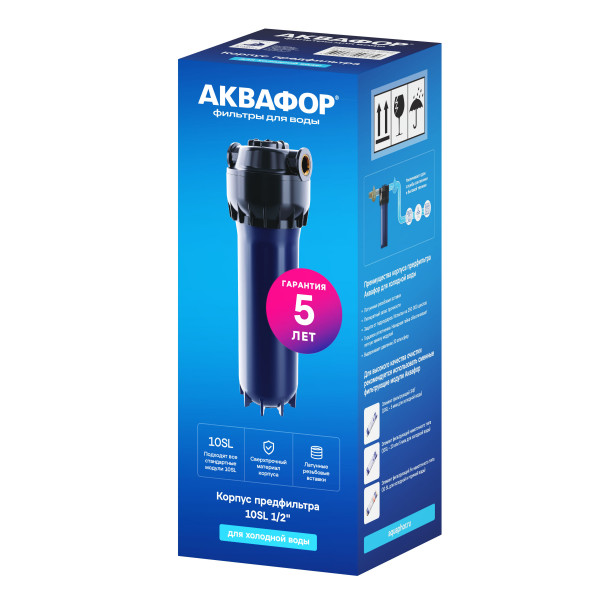 Корпус изготовлен из высокопрочного армированного пластика и не подвержен деформации. Имеет пятикратный запас прочности, проверен на давление 30 ат. Он выдержит любые перепады давления и защитит от протечек. Благодаря латунным вставкам полностью исключается возникновение напряжений в соединении "корпус-штуцер" (в отличие от предфильтров с пластиковыми резьбовым гнездом в крышке корпуса). При закручивании же в пластиковое гнездо штуцера с уплотнением лентой ФУМ или льном возникают напряжения растяжения, которые могут привести к разрушению корпуса.