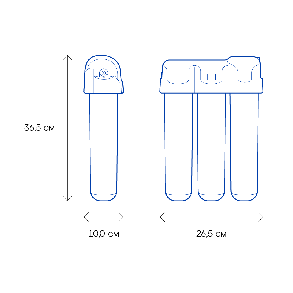 Обратноосмотические фильтры используются для абсолютной защиты от накипи, т.к. полностью устраняют соли жесткости из воды.даЧисло ступеней очисткиКартриджи последовательно очищают воду и от видимых примесей, и от растворенных. Первый картридж задерживает более крупные частицы, а каждый последующий - более мелкие. Чем больше ступеней - тем лучше фильтр очистит воду: поймает более мелкие видимые частицы ржавчины, песка и ила, успеет захватить из воды максимум растворенных примесей - хлора, нитратов, тяжелых металлов и других.3МинерализацияПроисходит после финишной очистки воды. Необходима прежде всего в фильтре обратного осмоса, поскольку такой фильтр полностью устраняет из воды все примеси, в том числе минералы. Минералы добавляются в оптимальной концентрации - для пользы и привычного вкуса воды.даПостфильтрацияФинальный этап очистки воды: картриджи постфильтрации удаляют самые мелкие механические частицы и кондиционируют воду, придавая ей более приятный вкус.нетНакопительная емкостьОбычно нужна в фильтрах обратного осмоса. Глубокая фильтрация требует времени. Чтобы Вам не приходилось ждать, пока вода наберется в чайник или кастрюлю, почти во всех моделях используется накопительный бак для чистой воды или другая емкость. В стандартном фильтре обратного осмоса под мойку воды в баке достаточно для семьи из 5-6 человек.даФильтрующий модуль в комплектедаОтдельный краннетДавление в водопроводе не менее, атм1,5Давление в водопроводе не более, атмМаксимальное давление воды на входе в систему, при котором возможна стабильная работа фильтра.6,5Ширина, смОбратите внимание на габариты фильтра, и измерьте, сколько свободного пространства в предполагаемом месте установки.26,5Глубина, смОбратите внимание на габариты фильтра, и измерьте, сколько свободного пространства в предполагаемом месте установки.10,0Защита корпуса от гидроударовдаИсходная водаЖесткая вода – вода с избытком минеральных солей. От нее появляется накипь в чайнике, известковый налет на сантехнике и разводы на посуде. Мягкая вода – та, в которой мало минеральных солей. Нет накипи в чайнике и разводов на посуде. Фильтры для мутной воды и фильтры от ржавчины, как правило, имеют несколько стадий очистки и дополнительный полипропиленовый картридж. Он задерживает механические частицы ила, песка и ржавчины и защищает картриджи более глубокой очистки.любаяУстраняет мутностьМутность водопроводной воды может говорить о том, что в ней много мелких механических частиц. Важно, чтобы в фильтре был установлен дополнительные картридж механической предфильтрации (полипропиленовый) - он продлит жизнь остальным картриджам более тонкой очистки.даУстраняет ржавчину, бурый осадокЛюбой фильтр под мойку удалит из воды крупные и мелкие частицы ржавчины. Некоторые фильтры имеют повышенный ресурс по железу: они дольше служат в такой воде, поскольку лучше подходят для удаления из воды железа и механических частиц ржавчины.даЗащита от бактерийВсе проточные фильтры в той или иной степени защищают от бактерий. Например, добавление серебра препятствует их размножению. Это стандартная степень защиты. Если в семье есть дети, пожилые люди или аллергики, воду рекомендуется обеззараживать, то есть полностью удалять микроорганизмы. Повышенную защиту от бактерий дают фильтры с половол