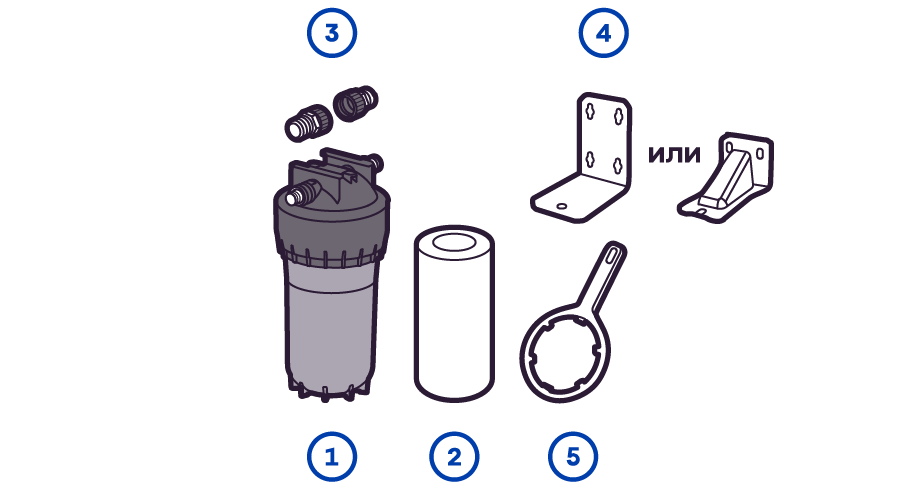 Готовый фильтр состоит из корпуса и картриджа для очистки воды. Если вы приобретаете только корпус, необходимо отдельно купить подходящий к нему картридж: это может быть картридж для механической очистки воды от ржавчины, картридж для глубокой очистки воды от хлора.