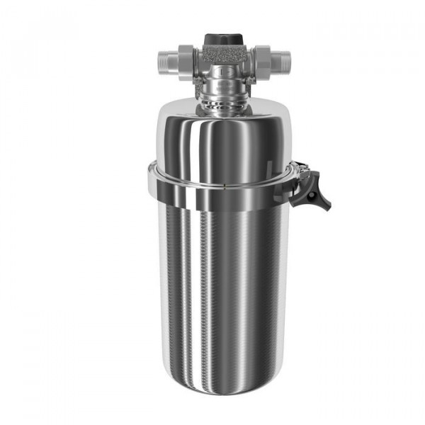 Модель оснащена быстросъемным креплением «американка», поэтому фильтр можно устанавливать в небольших нишах и труднодоступных местах. Нижний полукорпус изготовлен из нержавеющей стали марки AISI 316, особенно устойчивой к коррозии и высоким температурам.